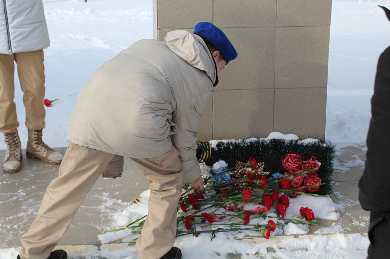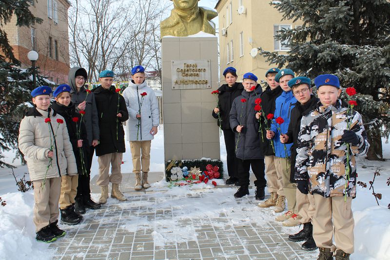 В завершении мероприятия юнармейцы школы возложили гвоздики к памятнику А. Матросову.