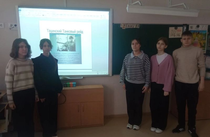 Обучающиеся вспомнили о тех героических событиях, которые происходили в военные годы, вспомнили солдат, которые освобождали нашу родную землю. Урок сопровождался показом документального фильма «Тацинский танковый рейд-вклад в Великую Победу».