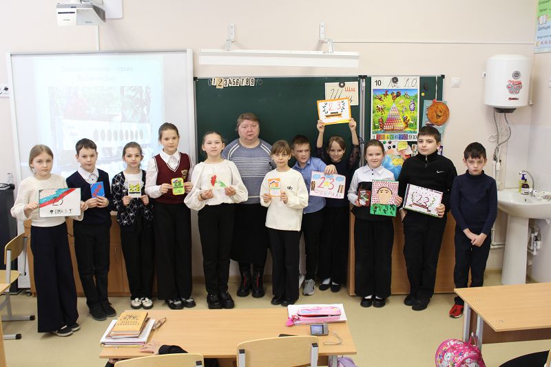 13 февраля в рамках месячника оборонно-массовой и военно-патриотической работы в школе состоялась встреча обучающихся 1 и 4 классов с библиотекарем Углегорской межпоселенческой бибилиотеки Громаковой С.А.
