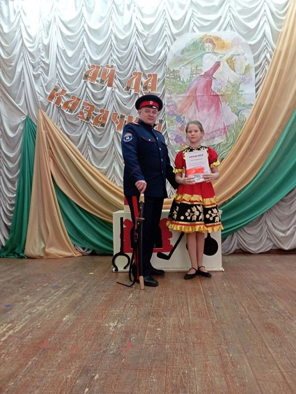 Девочки соревновались в трех конкурсных испытаниях. На этапе «Смотрины» участницы представили визитную карточку, в которой отразили историю своего рода и свои увлечения. На этапе «Ведь недаром на Руси славятся все казаки» конкурсантки исполнили творческие номера: казачьи танцы, песни, стихи о казаках. Конкурсное испытание «Казачья кухня» представляло собой презентацию казачьих блюд, приготовленных дома со своими родными. Углегорскую школу представляла обучающаяся 4 класса Галяпина Алена. Алена удостоена награды «Самая обаятельная участница». Поздравляем и желаем дальнейших побед!