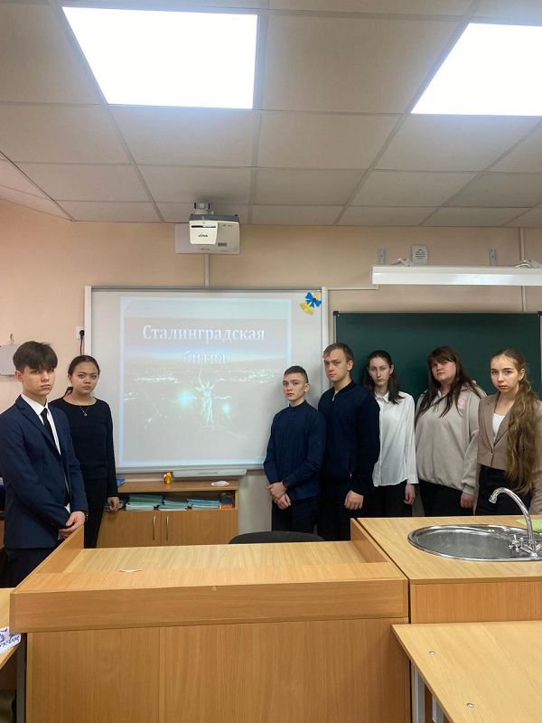 Сегодня в 6 классе проведен тематический классный час "Гордимся тобой, Сталинград!" Дети узнали об отважных бойцах, которые бились за каждую улицу и дом, о том, что в Сталинградской битве проявили мужество не только взрослые, но и дети. В заключении был показан ролик "Битва на Волге".
