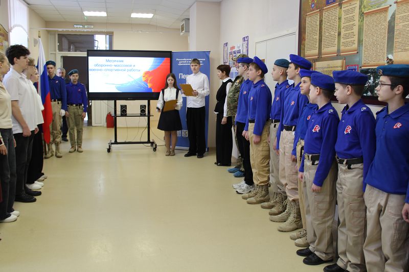 23 января 2026 года в нашей школе состоялась торжественная линейка, посвящённая открытию месячника оборонно-массовой и военно-патриотической работы. На линейке присутствовал участник специальной военной операции, с напутственным словом выступила директор школы Н.Ю. Астафьева.