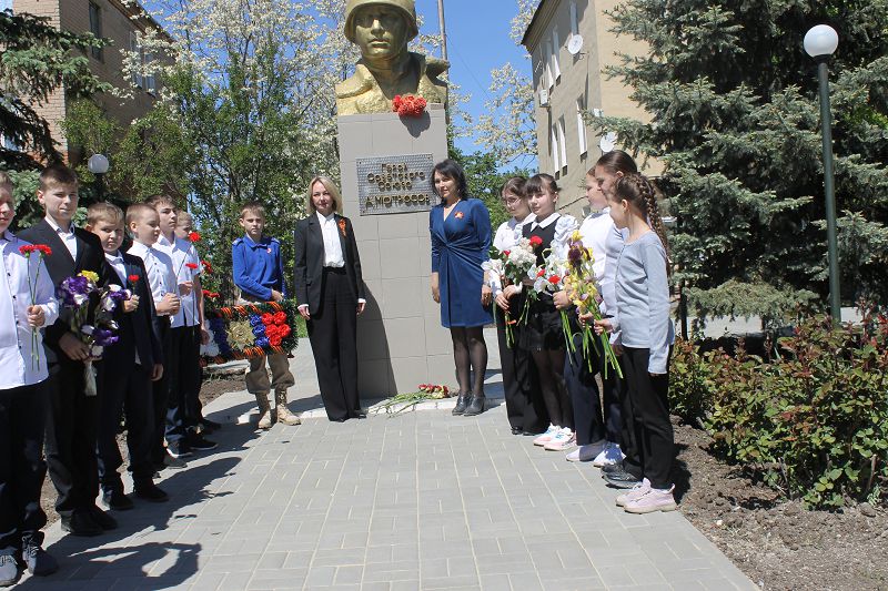 8 мая состоялось возложение цветов к памятнику А. Матросову, где присутствовала Управляющий делами Администрации Тацинского района Андриянова Е.К., глава Администрации Углегорского сельского поселения Ермакова К.В., работники Углегорского СДК, школьники и юнармейцы Углегорской школы.
