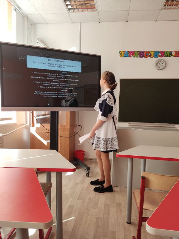 2 марта в Тацинской школе №2 состоялся районный фестиваль ученических и исследовательских проектов «День науки». Калюжная Вероника представила свою исследовательскую работу «Кристаллы: большие и маленькие» в секции «Прикладная химия» и стала победительницей!