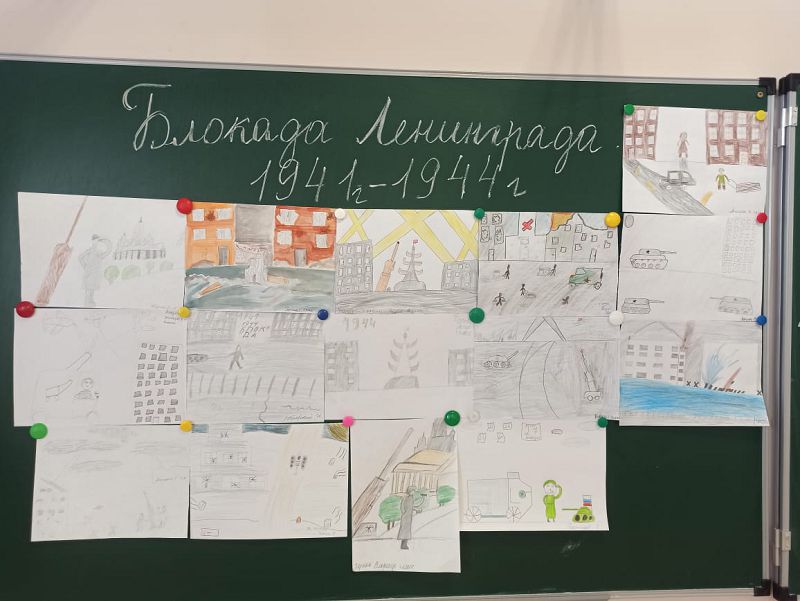 Обучающиеся 4 класса Углегорской школы в конце января в рамках месячника оборонно-массовой и военно-патриотической работы организовали выставку рисунков «Блокада глазами детей».