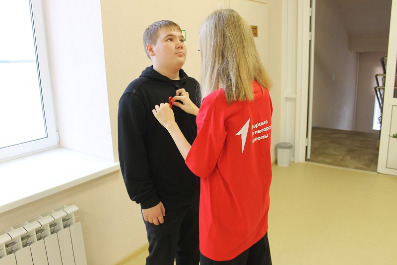 Активистами Движения Первых организована Акция «Красная лента». Многие педагоги и учащиеся школы сегодня надели на грудь красную ленту, которая считается символом солидарности борьбы со страшным заболеванием.