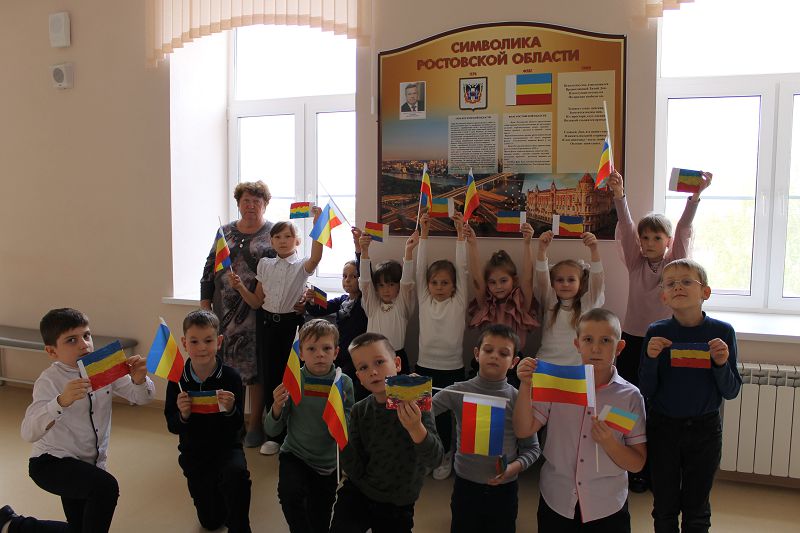 С 25 по 28 октября советник директора по воспитанию и взаимодействию с детскими общественными объединениями Овчарова О.М. запустила активность, в рамках которой обучающиеся делали фотографии возле места, где установлен флаг Ростовской области.