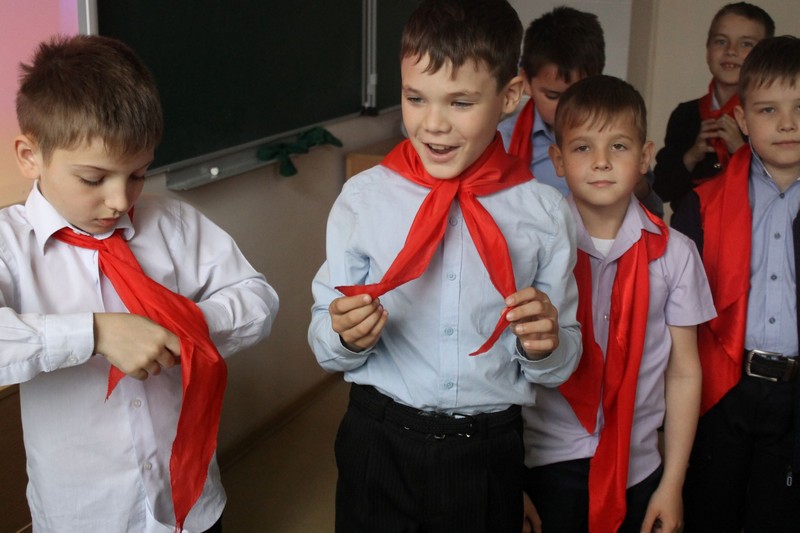 18 мая советник по воспитательной работе Денежкина Е.Г. рассказала учащимся средних классов о том времени, когда она работала пионерской вожатой в Углегорской школе с 1991-1998годы. О самых значительных и ярких традициях детского движения: «Зарница», турслет, смотр строя и песни, смотр художественной самодеятельности. Денежкина Е.Г. провела мастер- класс по завязыванию галстуков.