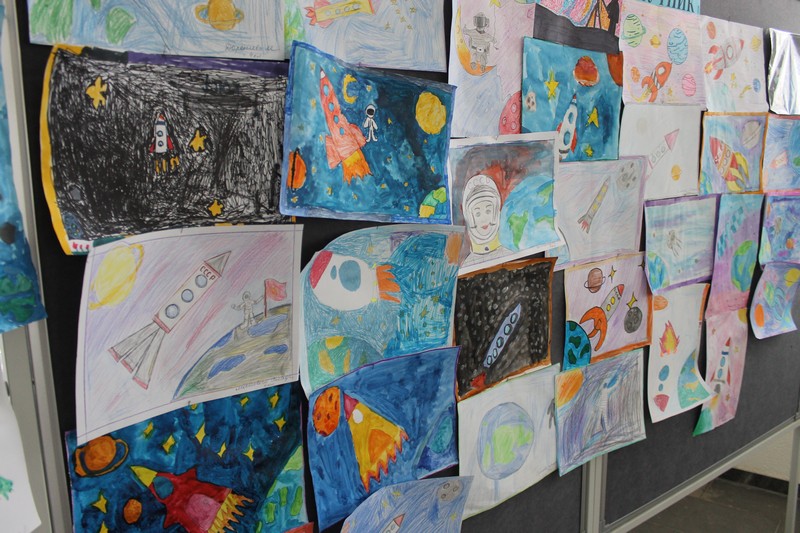 По плану воспитательной работы школы и в честь Дня Космонавтики, 12 апреля состоялась выставка рисунков «На звездных и земных орбитах…» между 1-7 классами. Выставка получилась очень красочной и масштабной.