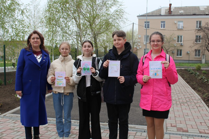 13 апреля обучающиеся 7 класса вместе с советником директора по воспитательной работе осуществили акцию «Старость в радость». Ребята поздравили с Пасхой пожилых людей РСО «Голубка» х. Ковалевский ,Егорлыкского района.