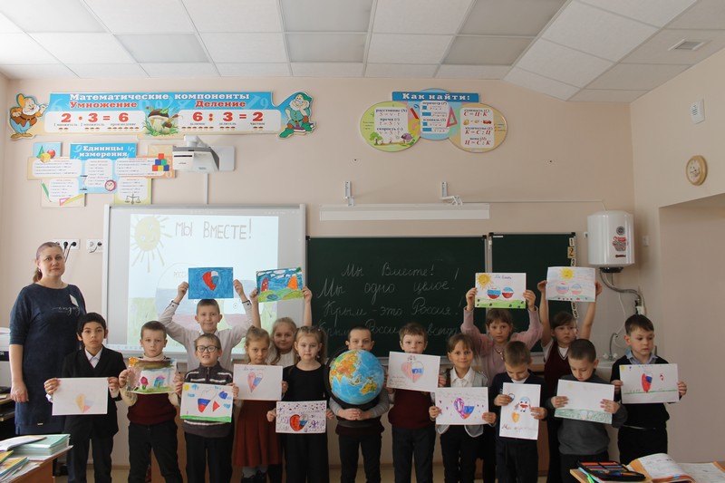 Для учащихся 1 класса советником по воспитательной работе совместно с классным руководителем Дегтяревой Л.Н. был проведен «Час истории», посвященный воссоединению Крыма с Россией.