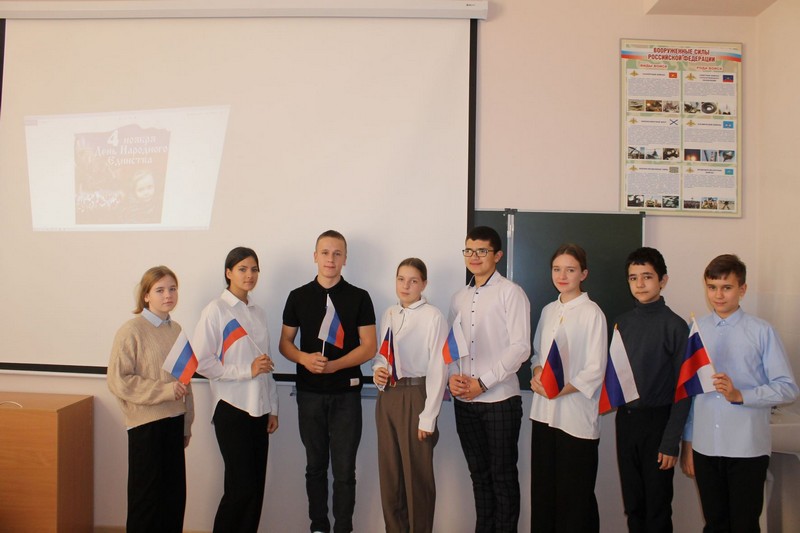 В преддверии праздника Дня народного единства в Углегорской школе был проведен ряд тематических классных часов. Этот день напоминает нам, как в 1612 году россияне разных вер и национальностей преодолели разделение, превозмогли грозного недруга и привели страну к стабильному гражданскому миру.