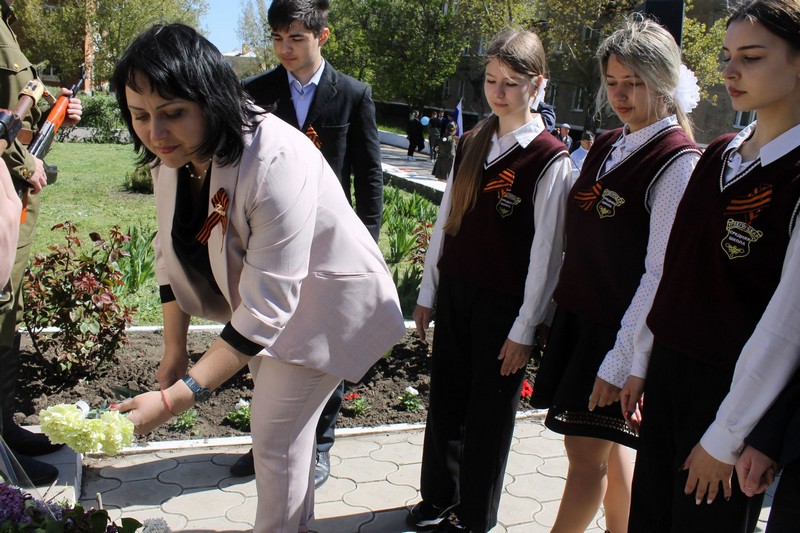 В канун празднования Дня Победы старшеклассники Углегорской школы, совместно с Главой Углегорского сельского поселения совершили возложение цветов к памятнику А.Матросову.
