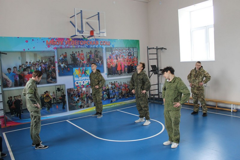 17 мая 2022 г. в МБОУ Углегорская СОШ продолжались занятия по учебным сборам для учащихся 10 класса. День начался с физической зарядки, затем были занятия по медицинской подготовке, изучению уставов, устройства, работы частей и механизмов и уходу за «АК-74».