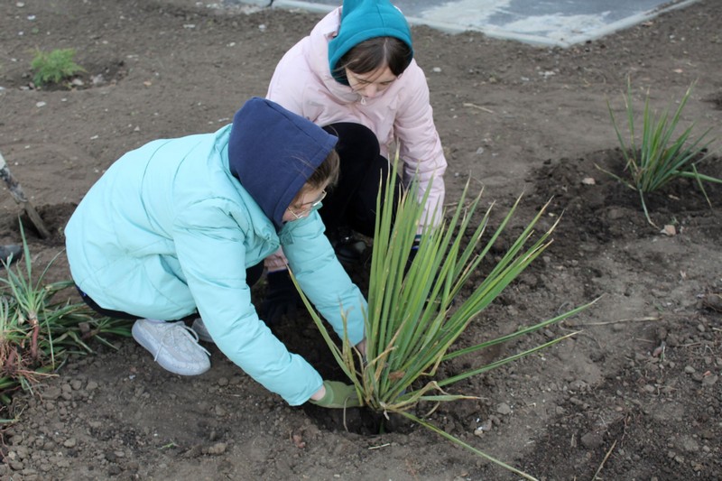 8 апреля школьники вышли на субботник в пришкольный двор. Обучающиеся убрали сухую растительность и активно принялись за озеленение- высадили саженцы юкки.