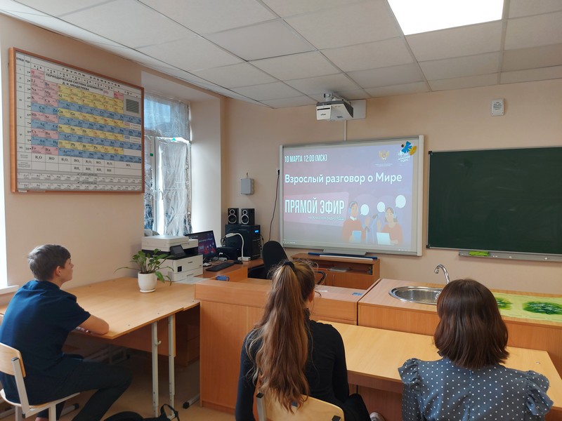 10 марта для обучающихся 8 класса состоялось мероприятие в онлайн формате на «Классном радио РДШ» на тему «Взрослый разговор о Мире».