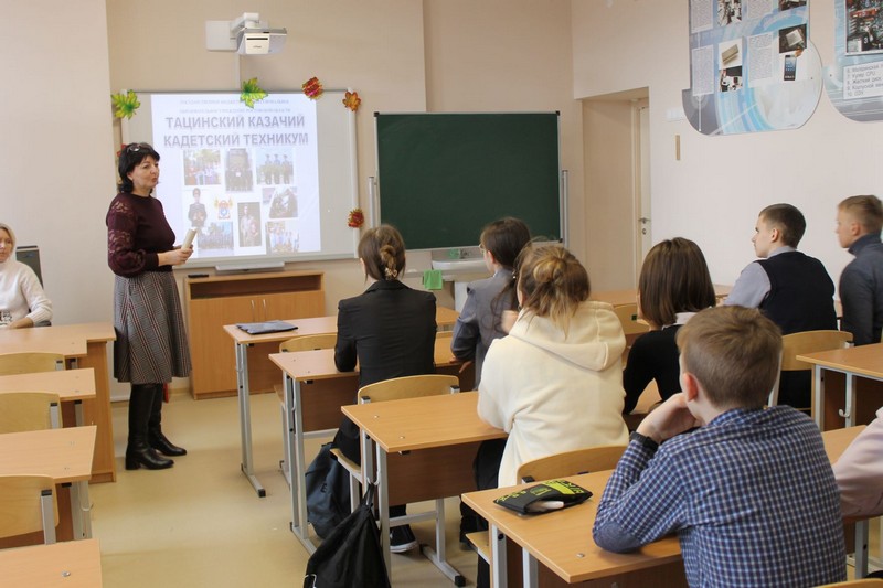 23 ноября для обучающихся 9 класса состоялась профориентационная встреча с представителями Тацинского казачьего кадетского техникума. Во время беседы ребята ознакомились с основными направлениями и специальностями, задали интересующие их вопросы.