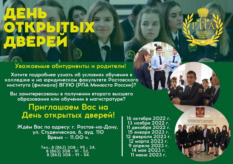 Информируем учащихся 10-11 классов о проведении Дня открытых дверей экономического факультета Ростовского филиала Российской таможенной академии.